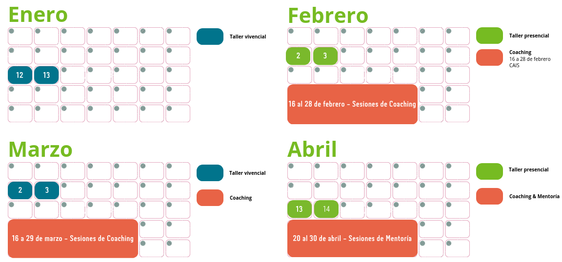 4 sesiones presenciales de 2 días en Sevilla durante los meses comprendidos de enero a abril - [64 horas bonificables a través de FUNDAE]